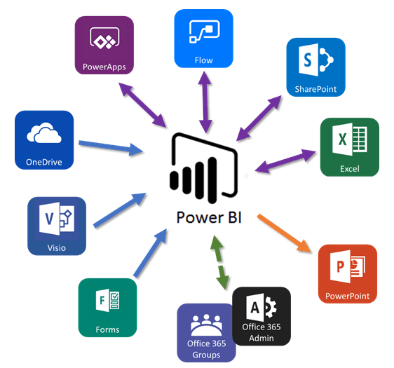 - Sharepoint: A Sharepointban tárolt adatok pár kattintással átvihetők a Power BI rendszerébe